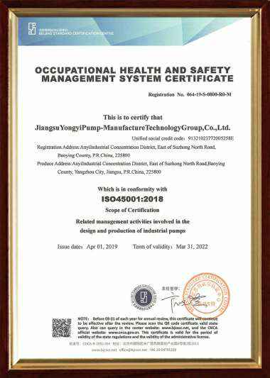 职业健康ISO45001认证证书(中文)